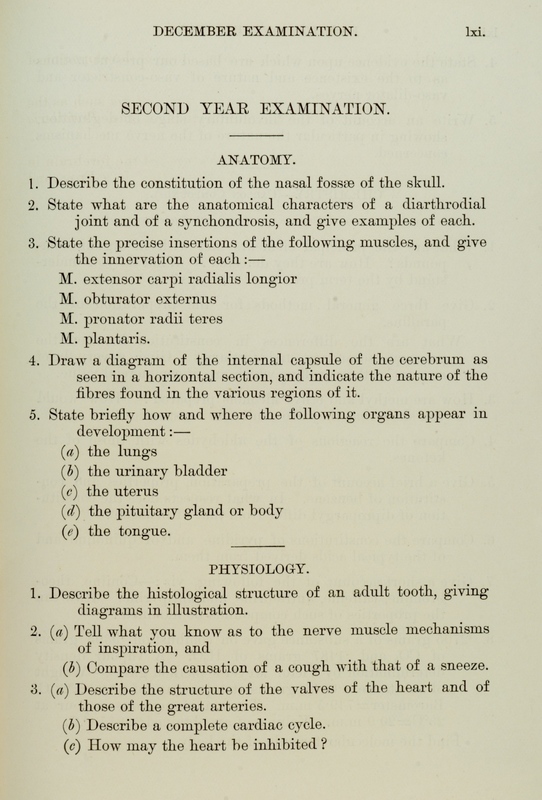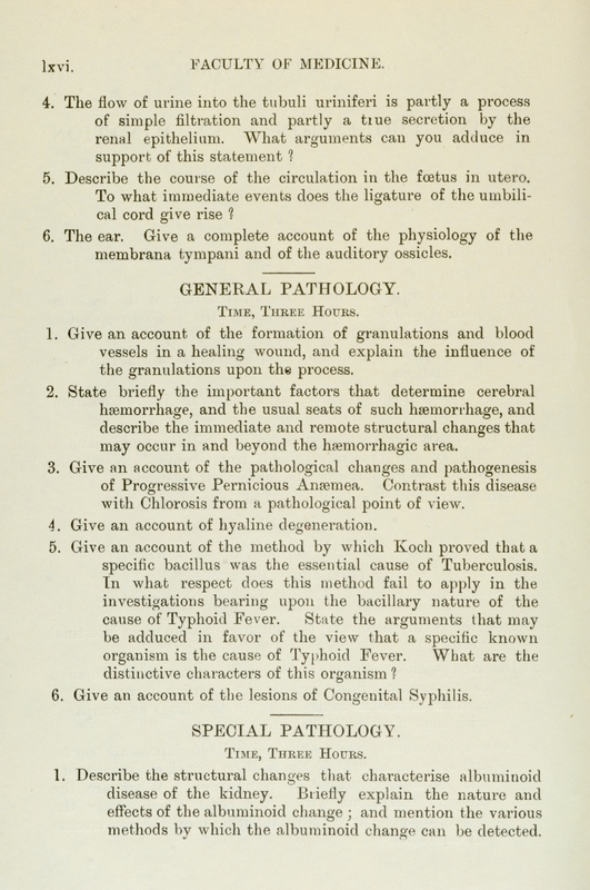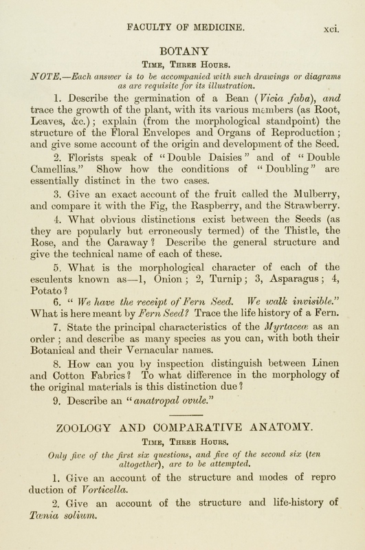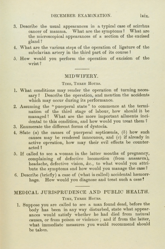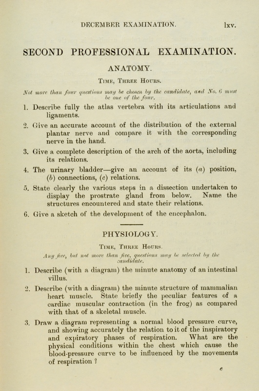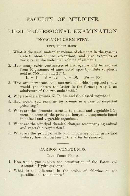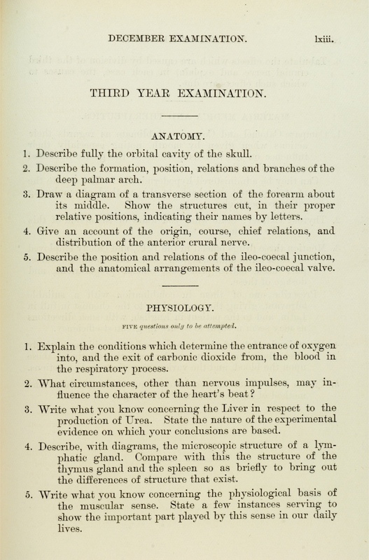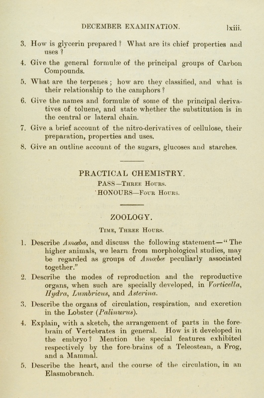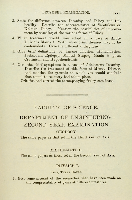 These exam papers have been copied from the University Calendars. They provide a fascinating overview of the varied curriculum in the early days of the Faculty.
