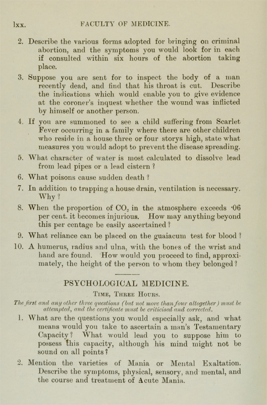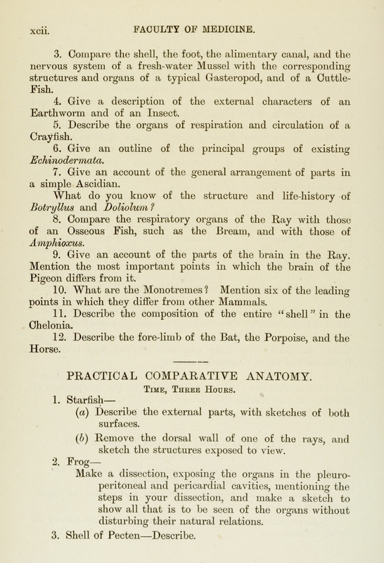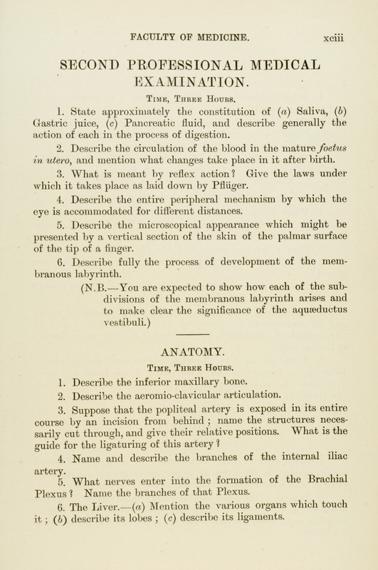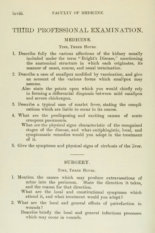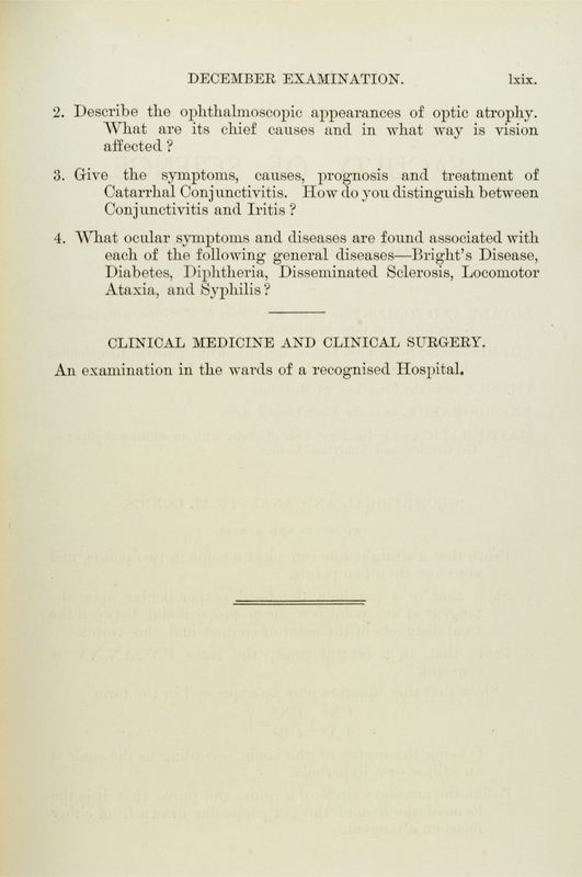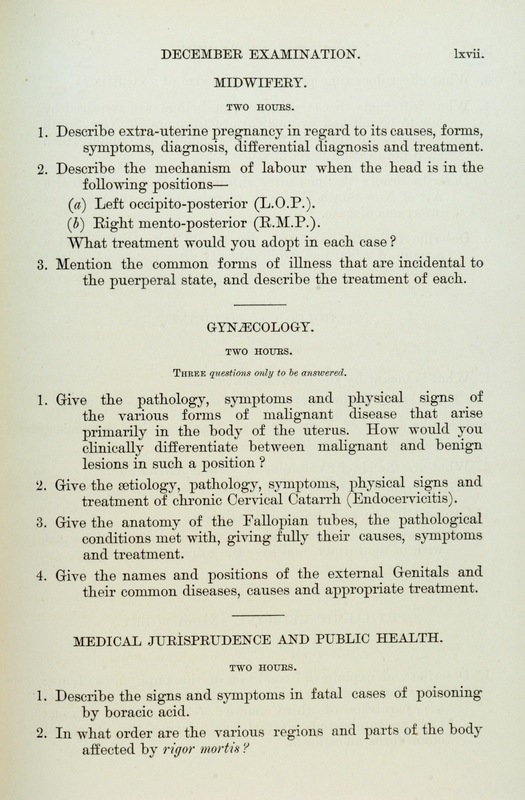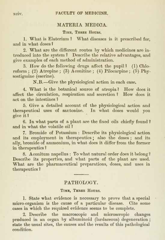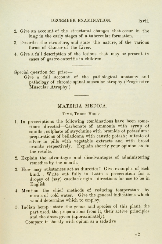 These exam papers have been copied from the University Calendars. They provide a fascinating overview of the varied curriculum in the early days of the Faculty.